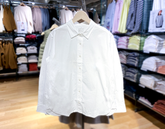 やわらかくしっとりとした風合いが特長の白シャツ。ゆとりとリラックス感のあるシルエットで、カジュアルシーンでも使いやすいデザインです。