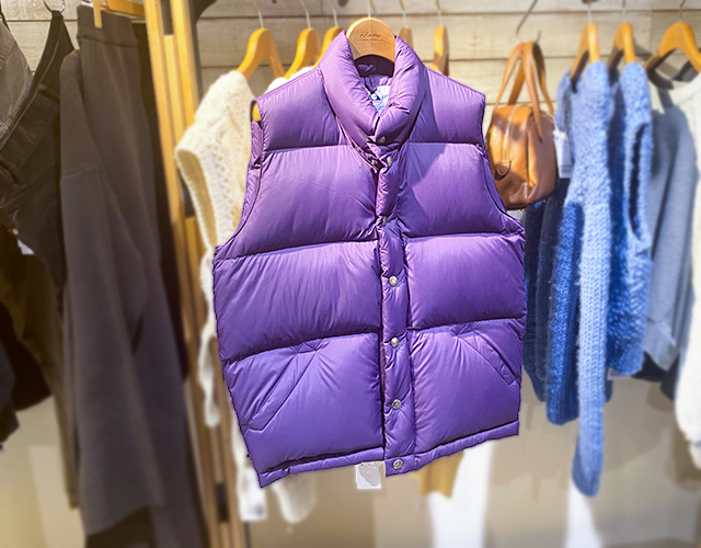 パープルカラーが珍しいダウンベスト!ストリートトレンドを融合させたアウトドア・カジュアルなアイテムです。