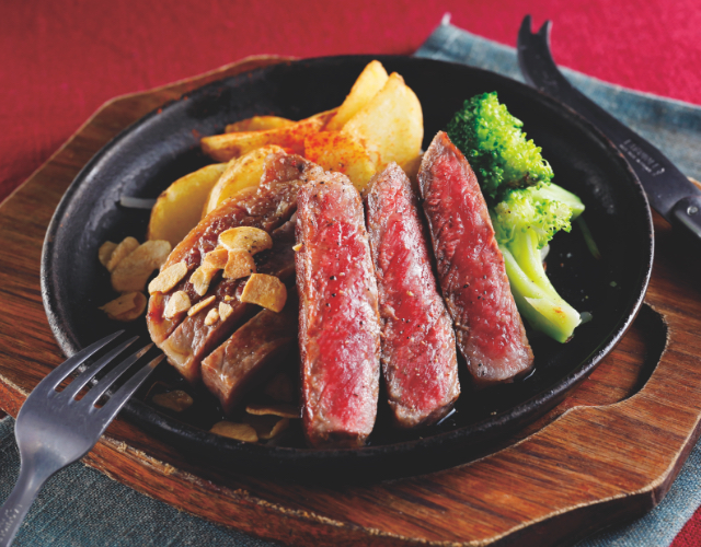 厳選した牛肉をリーズナブルな価格で提供する「鉄板酒場 犇屋」。お昼からお酒をたしなめるお店として愛されています。岡山県産清麻呂牛を使用したステーキは、さっぱりとした甘みのある脂身が特徴。犇屋でしか味わえない自慢のメニューを天王寺ミオ限定価格でどうぞ。