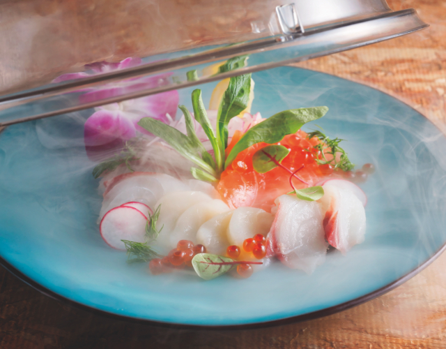 本日鮮魚のカルパッチョ 瞬間燻製スタイル 1,408円(1日15食限定)