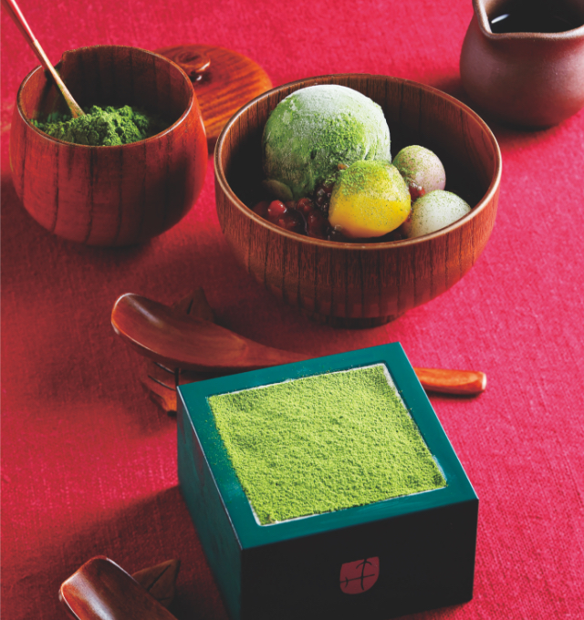 「茶一途」を掲げる宇治園が監修したティラミス。抹茶風味とチーズクリームのハーモニーが絶妙な1品。食事後のデザートやティータイムのスイーツとして、ちょっとした贅沢を堪能しよう。同じく宇治園の抹茶アイスを使用したあんみつは、お好みで抹茶粉と黒蜜をかけて。