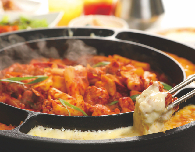 シジャン特製の甘辛いタレで味付けした鶏もも肉を、2種類のとろ~りチーズに絡めていただくフォンデュコース。カップルやグループでシェアするのが楽しいメニューです。