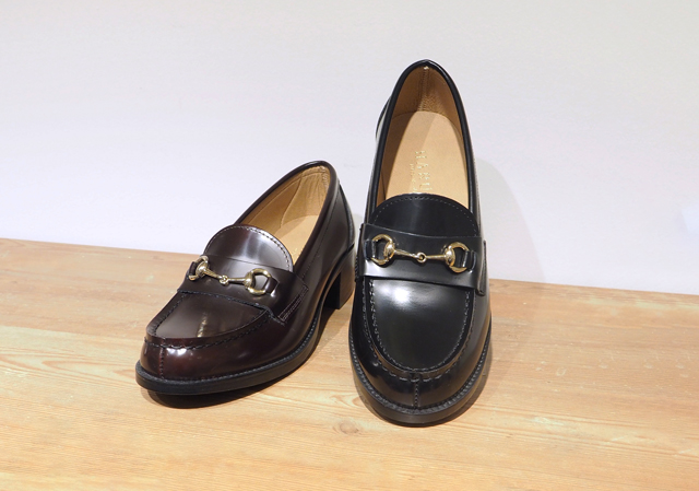 こちらのローファーも、おしゃれなオフィスシューズとして大人気のアイテム。ゴールドのホースビット(金具)に高級感があり、スタイリングのアクセントになってくれます。4.5cmの太ヒールはヒール初心者さんにもおすすめ。