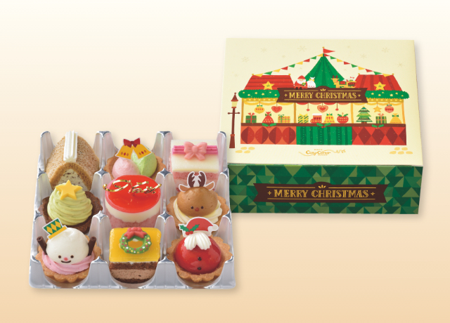 サンタ・トナカイ・スノーマンをはじめ、クリスマスの飾りをイメージしたプチケーキの詰め合わせ。いつまでも眺めていたくなるかわいらしい見た目で、大切な家族や友人とのクリスマスパーティーを盛り上げてくれます。もちろん食べれば笑顔になること間違いなし。9個入りのほか12個入りもあります。