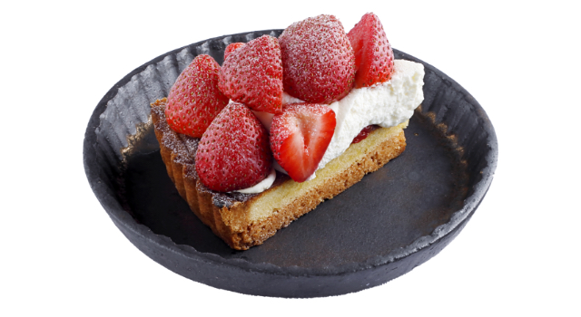 フルーツを主役にしたスイーツを提供する果物専門店のいちごタルト。ゴロッと大きないちごを贅沢に使用した、アローツリーならではの1品です。香ばしいタルト生地と北海道産生クリームに、甘酸っぱいいちごが相性抜群。いちごは12月からあまおうを使用。クリスマスパーティーのクライマックスに。