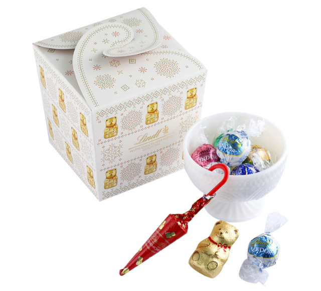 リンツテディが描かれたボックスには、人気のリンドールやクリスマス限定のチョコレートがいっぱい。クリスマス限定のリンドール スノーマンは、ピック&ミックスにも登場。見た目華やかで、テーブルに広げると映えるので、自宅や友人宅でのクリスマスパーティーに持っていけば盛り上がること間違いなし。お子様やお孫様、お友達へのクリスマスプレゼントにもおすすめ。