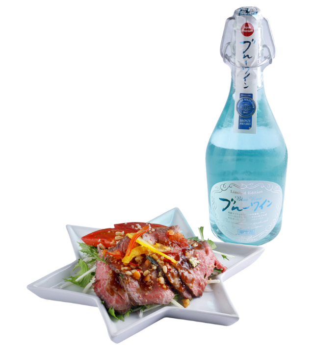 国産ナイヤガラと甲州ブドウで醸造した色鮮やかなブルーワインは、ボトルのままでもグラスに注いでも抜群の存在感。クリスマスパーティーに彩りを添えてくれます。ワインのお供には、ジューシーな知多牛の自家製ローストビーフを使用したサラダをどうぞ。店頭では選りすぐりのデリカ&グロッサリーが豊富にそろいます。おうちパーティーのテイクアウトに最適。