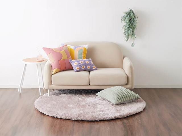 室内を引き立てるコンパクトサイズのエルメソファ。マットなファブリック素材がナチュラルコーディネートを演出。美しい曲線を描くフォルムがインテリアを新鮮に引き立たせてくれます。