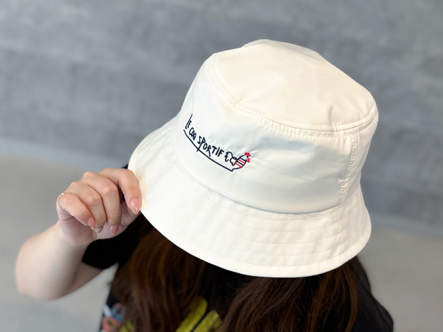 ポリエステル素材を使用した軽量感のあるバケットハット。撥水加工を施し、雨の心配もなんのその。