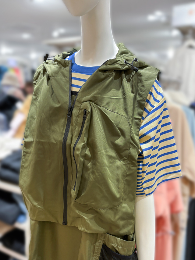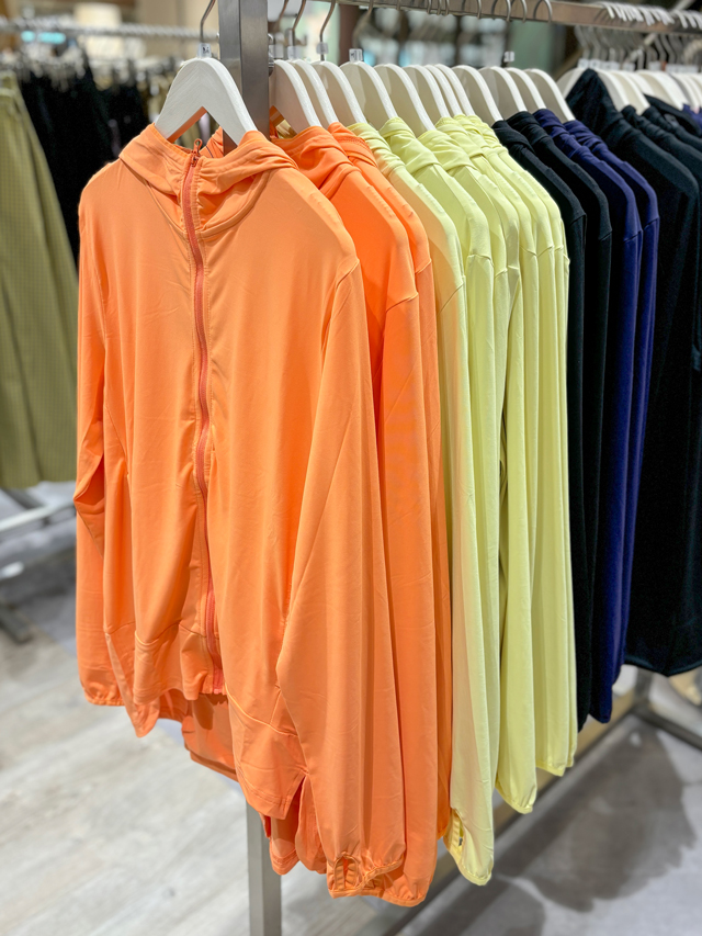 UVカット、接触冷感、遮熱、ポケッタブルという4つの機能を備えた万能すぎるパーカー。炎天下に長時間いるときには、軽くぬらすとより冷たく感じられます。指先までカバーしてくれるのもうれしいポイント。