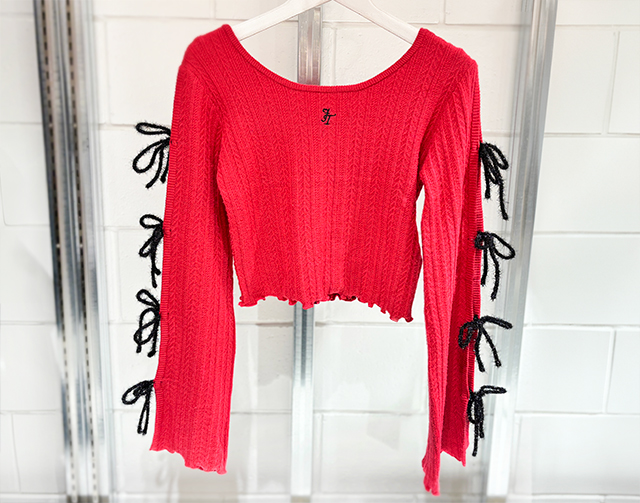 立体感のあるニット素材に、ラメリボンがトレンド感たっぷりのニットトップス!