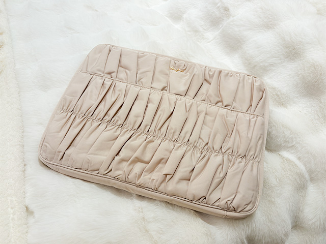 ワンポイントのロゴがアクセントのギャザーが施されたおしゃれなPCケース。