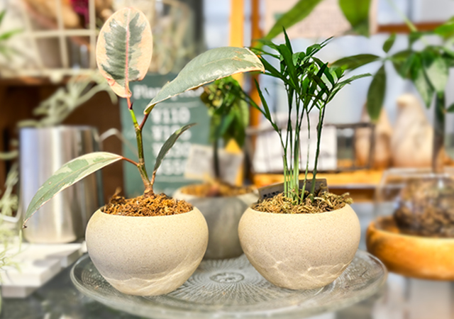 空間に癒やしを与えてくれる観葉植物。丸くて可愛らしい鉢付き!