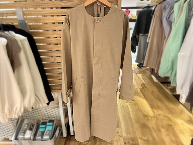 晴れの日も、雨の日も男女兼用で使える巾着バッグ付き晴雨兼用トレンチコート。表面は水をはじきやすく、シワになりにくい、動きやすいストレッチ性のある素材をしようしています。