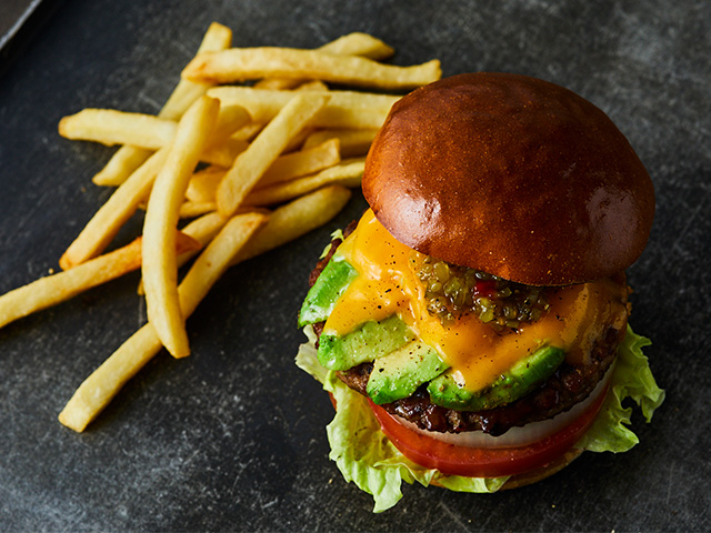 肉汁あふれるどっしりとしたパティにうまみ濃厚なチェダーチーズを組み合わせ、アボカドを加えたアボカドチーズバーガーも美味!熱でとろんと溶けてパティに絡むチーズが絶品です。