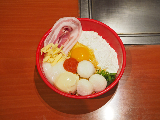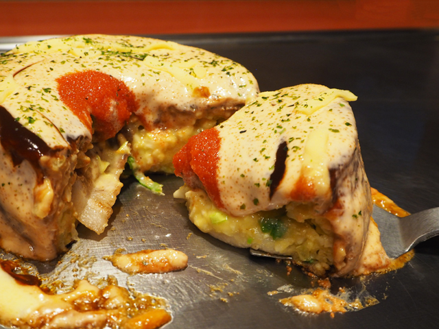 パンケーキ粉をブレンドしたほんのり甘めの生地が、たっぷりの具材とベストマッチ♪ふわとろの食感とおもちのボリューム感に加え、明太子のアクセントも生きた、甘じょっぱい至福のおいしさです!