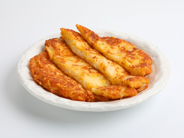 カリカリに焼き上げた具材たっぷりのチヂミに明太子ソースをかけ、チーズをまぶした明太チーズチヂミ。チーズはさっと炙って香ばしさをプラスします。