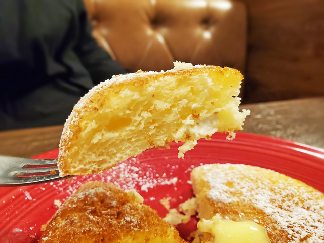 スイーツなら甘じょっぱさがクセになるチーズスフレパンケーキはいかがでしょう(14時〜注文可能)。スフレパンケーキの生地に、固形状のクリームチーズとステッペンチーズを混ぜ込み、ふんわり焼き上げたオリジナルのおやつです。