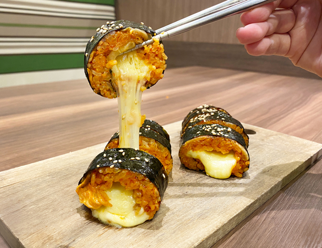 チーズキンパにはたっぷりのチーズが巻き込んであり、とろけて伸びる様子が食欲をそそります。本格的な韓国料理を味わえるこちらのお店には、チーズを活かしたメニューがもりだくさん。