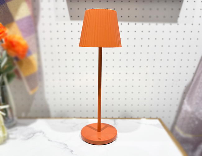 お部屋のワンポイントになるオレンジカラーのデスクランプ!スイッチ部分を軽くタッチすることで、点灯・消灯でき、長押しで調光できるため、お好みの明るさで照らせます。