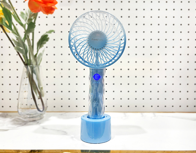 見た目も可愛い、2WAYタイプのUSB充電式ハンディファン!5段階の風量と静音性に加え、リズム風もボタン1つで調節出来てしまいます!カラバリも豊富でハンドルのウェーブが今っぽい!ファッションや使用シーンに合わせて複数持ちしたくなるハンディファンです。