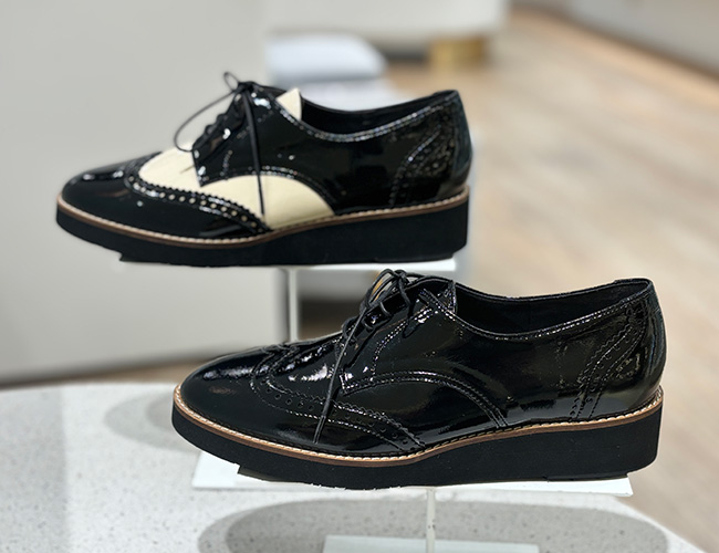 モードな雰囲気がワイドシルエットのパンツやロングスカートに合う1足。