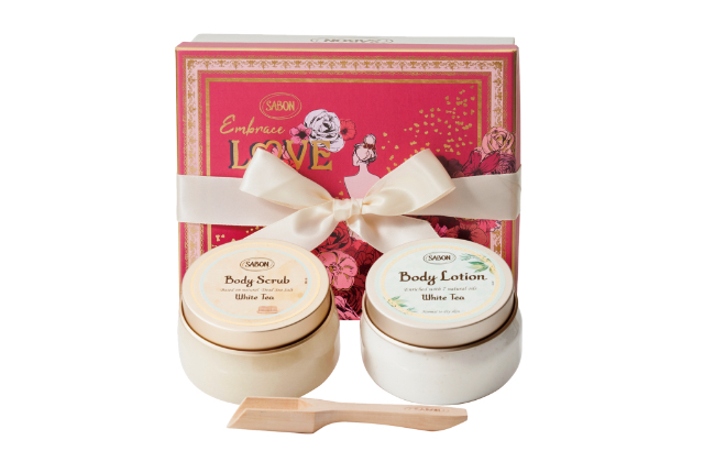 仲良しの女友達や家族への贈り物なら、喜ばれること間違いなしのボディケアアイテムを贈ってみては?サボンのボディケアデュオは、華やかなバレンタイン限定ボックスに入った、ボディスクラブとボディローションの数量限定セット。2019年に限定コレクションとして発売され、優美な香りで大人気となった「ホワイトティー」が待望のレギュラー発売。ボディスクラブは週2回を目安に全身に使用することで、余分な角質をケアし潤いあふれるやわらかな肌へ。ボディローションはシアバターや7種のボタニカルオイル配合で、伸びやすくなめらかな仕上がり。友達や家族へのギフトだけでなく、自分用のトライアルキットとしてもおすすめ。