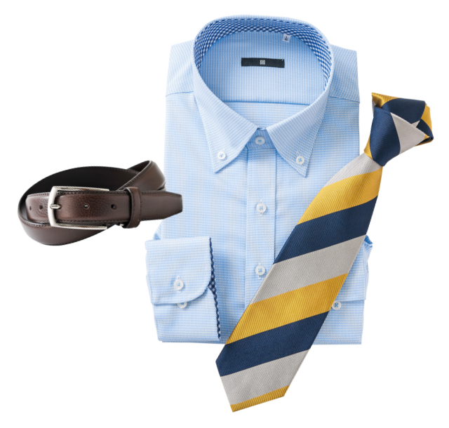 仕事でスーツを着用する彼氏や旦那様、お父様にプレゼントするなら、ビジネス小物がやっぱり鉄板。ネクタイは色や柄が豊富なので、その人のイメージや伝えたい思いを自分なりに表現できます。写真のネクタイに使われている「イルミネイティング」は2021年のトレンドカラーで、活気や幸運を感じさせる明るいイエローカラー。ブルーのワイシャツはネイビーカラーのスーツと相性◎。ベルトのカラー選びはシューズに合わせて。タイピンやハンカチなど、コーディネートを楽しみやすい小物と一緒に贈るのもおすすめ。バレンタインギフト以外にも、この春から新社会人になる男性へのお祝いとしてもぴったりな贈り物です。