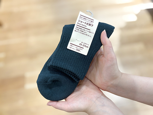 足なり直角 パイル編み ショート丈靴下(無地) 390円