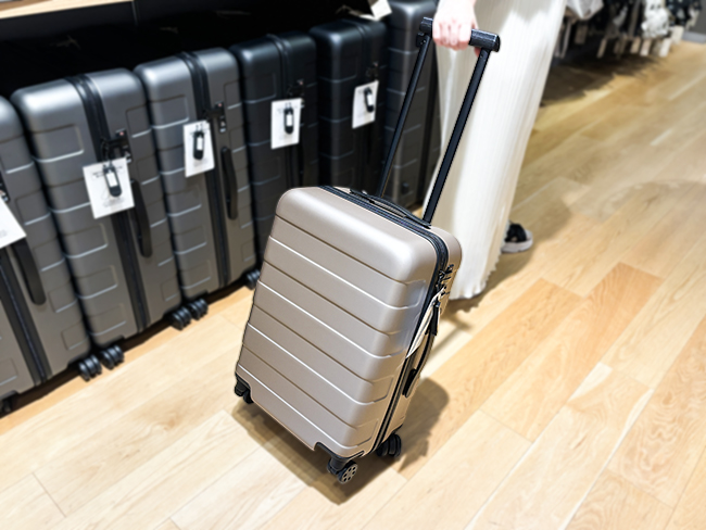 キャリーバーの高さを自由に調整できる、ストッパー機能付きのキャリーケース。走行音が静かでスムーズに移動できる双輪キャスターを採用し、鍵には安心のTS(TSA)ロックを搭載しています。