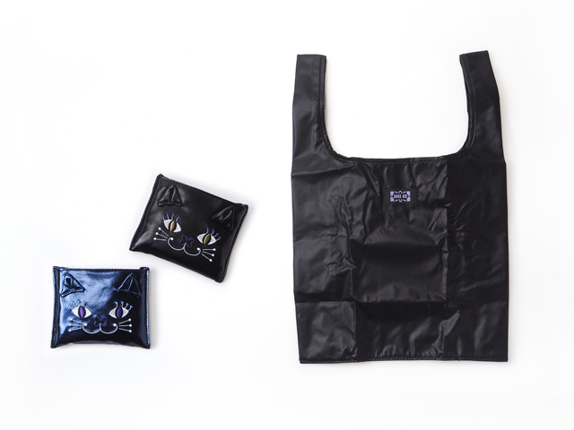 メタリックカラーがかっこいい、モードで目を惹くエコバッグ。折りたたんで内側のポケットに収めると猫に早変わり!持ち歩いている時はコンパクトなのに収納力抜群で、外出先で荷物が増えてしまった場合も安心です。