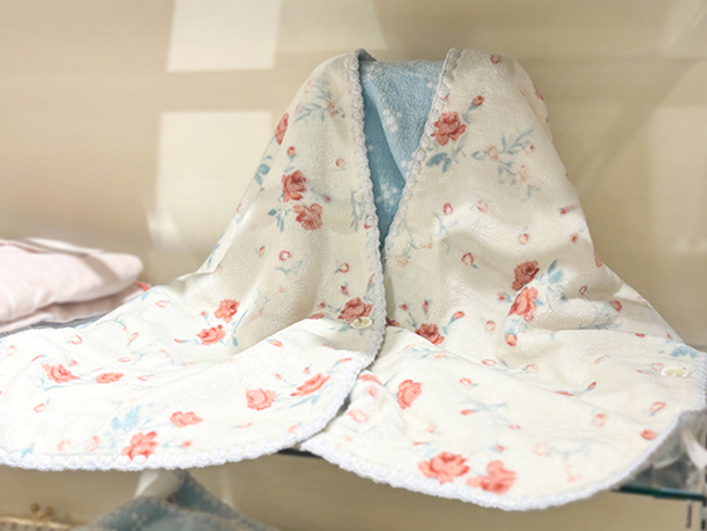 アフタヌーンティーらしいフラワー柄をあしらった、ふんわり柔らかな肌ざわりのケープ。ポリエステル100%の軽い素材感で、1枚仕立てながらもしっかりと肩まわりをカバーしてくれます。冷房の効いた室内や、気温差が気になる日に備えておくと便利なアイテムです。
