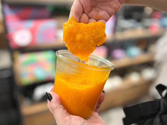 ジューシーなオレンジとシーソルトで古い角質をオフし、お肌を柔らかくなめらかに整えるボディスクラブです。搾りたてのオレンジジュースのような、フレッシュで爽やかな香りが広がります。
