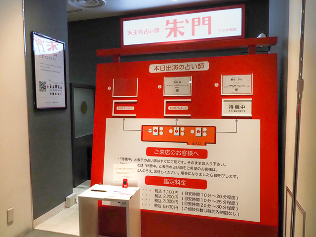 関西の人気占い師50名が日替わりで占う「占いの館 朱門」。四柱推命や九星気学、西洋占星術、タロット、手相など、多様な占術で今と未来をずばっと占ってくれると評判です。