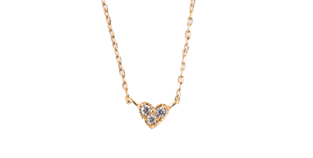 3つのビジューがキラキラ輝くネックレスは、ホワイトデーのお返しにぴったりなハートモチーフ。きれいめファッションやキュートなデザインがお好きな方におすすめです。22Kメッキのため、丈夫で普段使いしやすいのもポイント!