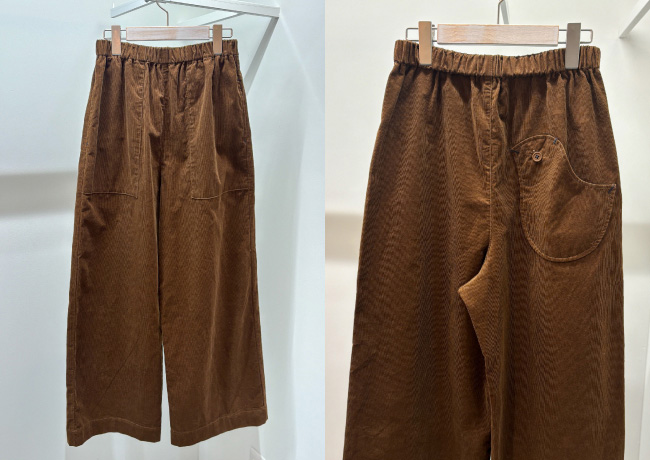 POU DOU DOUの定番人気「とりポケットパンツ」。畝が細かく薄手でやわらかなシャツコール素材を使用しています。セミワイドのストレートシルエットでさまざまなコーディネートに取り入れやすいデザインです。