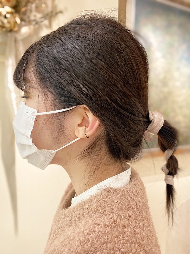 ヘアアクセと一緒に、マスクの邪魔になりにくいイヤーカフを合わせたスタイルが今人気。アクセサリーはシルバーとゴールドのMIXがトレンド。マスク生活の中でもおしゃれを楽しもう。