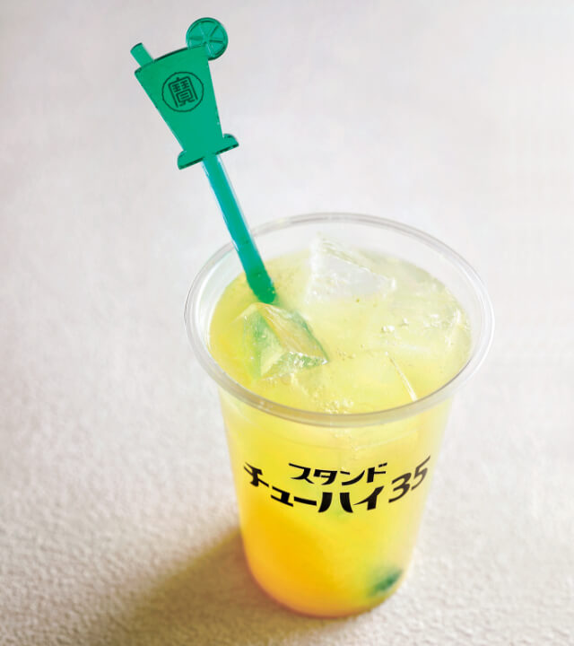 ミオえきッチン&LOOP2周年を記念して開発されたスペシャルチューハイ。沖縄県産のシークヮーサーを専用のジューサーで絞りました。皮の苦みと果汁の酸味がミックスされた、他では味わえない天王寺ミオ店限定のドリンク。食前、食中どちらでも美味しくいただけて、テイクアウトもOK。グラスモチーフの付いたマドラーもかわいくて好評です。他にも、スタンドチューハイ35にはいちご、キウイ、デコポンなど、春らしい旬のフルーツを使用したチューハイが勢揃い。レモンサワーフェス2019グランプリを取った「沖縄塩レモンチューハイ」も見逃せない。駅近なのでサクッと飲める居酒屋です。