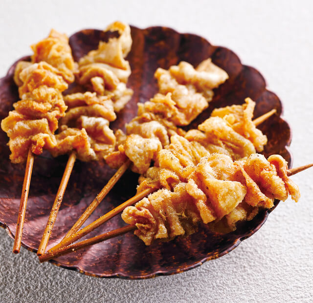 駅近でリーズナブルに立ち飲みが楽しめる焼鳥居酒屋。ミオえきッチン&LOOP2周年を記念して、人気メニューの皮串揚げを天王寺ミオ店だけの限定価格でご提供。タレとスパイスの絶妙な味わいはやみつきになること間違いなし。テイクアウトもOKなので、おうち飲みに活用するのもおすすめです。