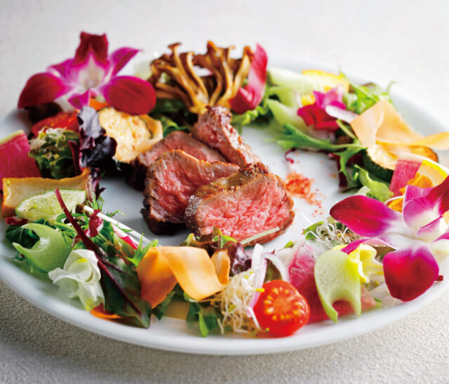 牛ロースのグリル 春の菜園風桜塩で。 1,518円