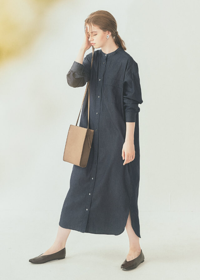秋らしい深みのあるカラーが特徴のデニムシャツワンピース。柔らかくライトな質感で、ストレスフリーな着心地が魅力。1枚でサラッとラフに着こなしたり、ガウンのように羽織ったり。気分やシーンに合わせたコーデが楽しめます。裾のサイドに程よくスリットが入っているので、パンツとのレイヤードコーデや、ブーツと合わせてもすっきりとした印象に。お仕事、子育て、休日のアクティブなシーンにもおすすめ。日常の様々なシーンで活躍する1枚です。