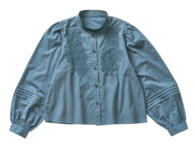この秋トレンドのくすみ系カラー。爽やかなブルーのくすみカラーは、実はベージュやグレーよりもコーデしやすい優れもの。秋柄の定番チェックや、冬のブラックとの相性が良く、ワントーンなのですっきりとした印象。フワッとしたシルエットで、レース刺繍や袖のデザインがガーリーなブラウスは、レイヤードコーデや羽織スタイルが多くなる秋に大活躍です。