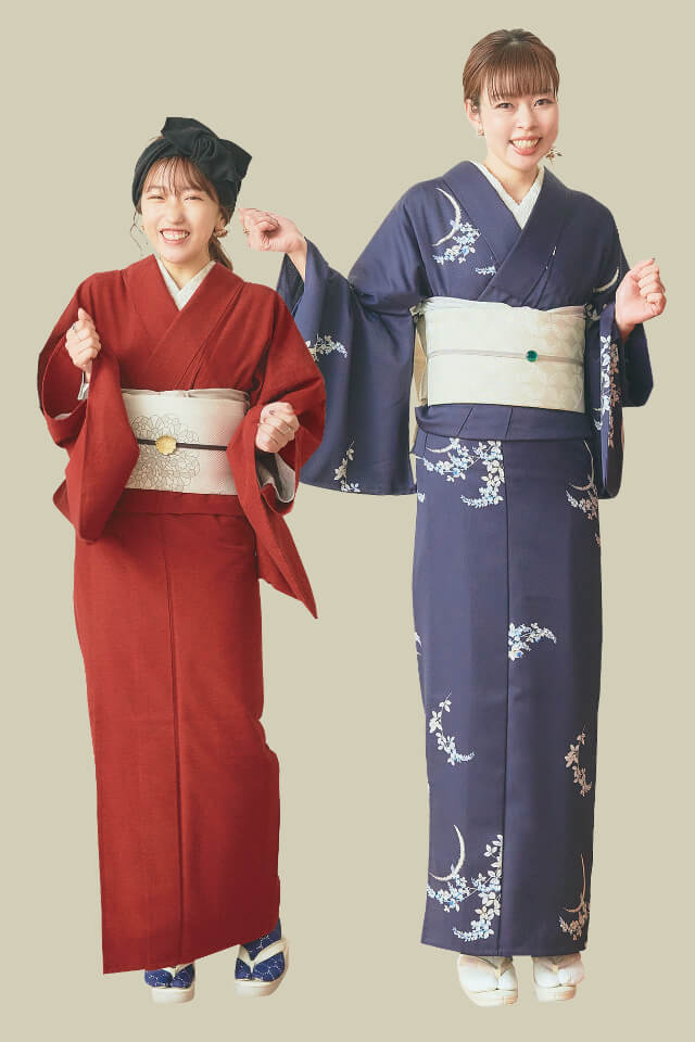 赤と黒の糸で作られた深みのあるカラーの「赤無地木綿」は、キモノバイナデシコで人気のアイテム。丈夫な綿素材が着れば着るほど肌に馴染んで、自宅で洗濯もOK。真夏以外の10ヶ月間も着られます。無地なのでコーディネートが幅広く、黒糸が混じっているおかげで肌なじみが良いところもショップスタッフのお気に入り。