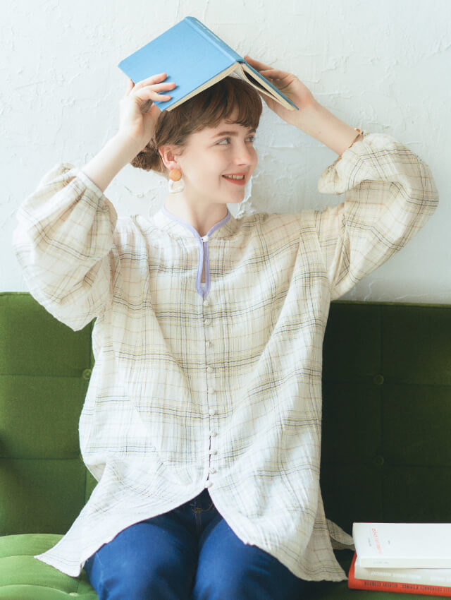 襟もとの配色パイピングがトレンド感抜群のチェックブラウス。フロントのくるみボタンもポイント。生地は柔らかく落ち感があり、リラックス感を演出してくれます。春から夏まで使えるドライタッチな肌触りも魅力。デニムとのコーデも相性抜群ですが、同素材のパンツと合わせたセットアップもおすすめ。ボタンを開けて羽織ればオフィスカジュアルの着回しでも大活躍。天王寺ミオ店だけの限定カラーなので見逃さないで。