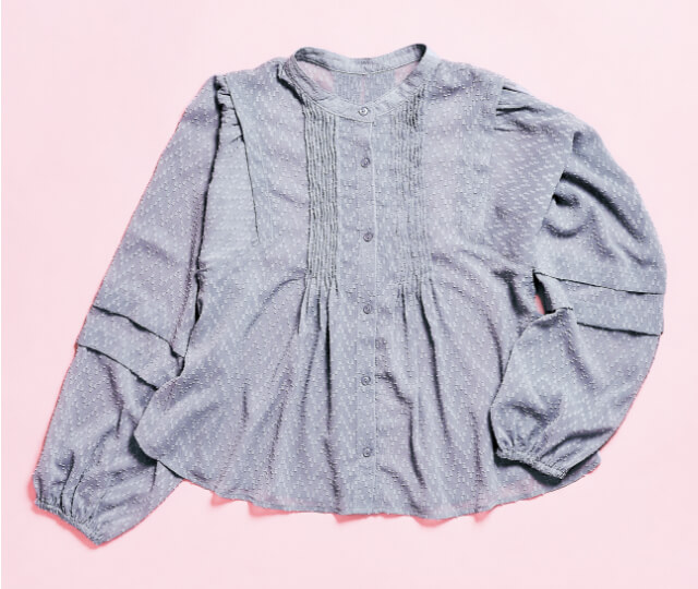 透け感のある素材が春らしい2WAYブラウス。絶妙な色合いのくすみブルーは天王寺ミオ店だけの限定カラー。新生活の気分を盛り上げてくれます。幾何学模様の刺繍もアクセント。デニムと相性が良く、セポのアイテムでは定番の「セルビッチレギュラーストレート(7,700円)」と合わせるコーデがおすすめ。ホワイトボトムスに合わせればオフィスカジュアルにも対応。