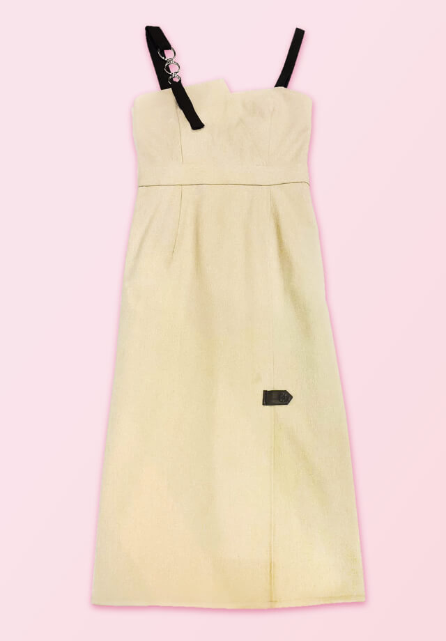 きれいなシルエットが印象的なジャンパースカート。アシンメトリーなディティールや、肩紐の3連リングなどエッジの効いたデザインがあちこちに。1枚でサマになるアイテムです。タイトなラインなので大人っぽい雰囲気を目指したい方に。オフィスカジュアルでは、コンパクトなニットトップスを合わせたスタイルがおすすめ。トレンドのシアートップスとのコーデもこなれ感が出ます。