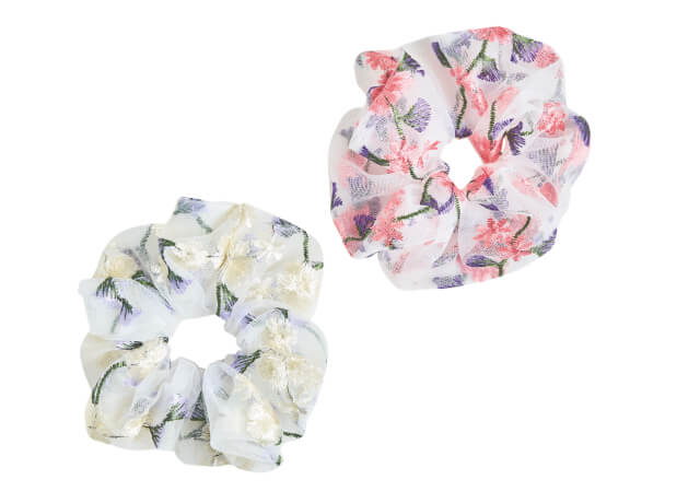 オーガンジーの生地に春らしいお花の刺繍が入った、2021年春トレンドのボリュームシュシュ。華やかなデザインで、きれいめシンプルなコーデのワンポイントになります。オフィスカジュアルにトレンドアイテムを取り入れたい人におすすめ。ポニーテールなどのまとめ髪を簡単におしゃれに仕上げられます。可愛らしい雰囲気をアップさせるパールピアスと合わせても◎。