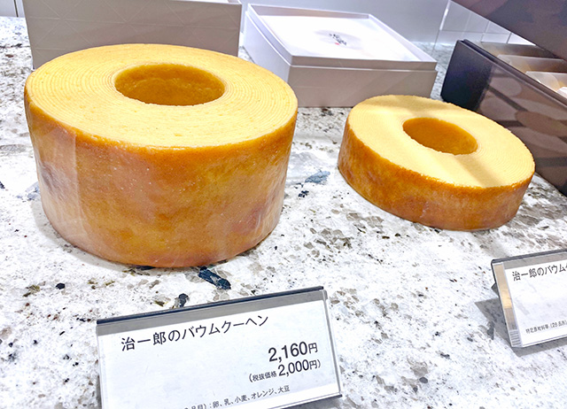 静岡県浜松市から誕生した「治一郎」。看板商品のバウムクーヘンや、しっとり食感のロールケーキ、ミルク感が楽しめるプリンなど、魅力的なスイーツがたくさん並んでいます。