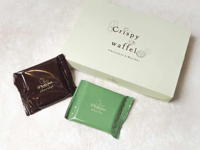 ワッフル生地にカスタードを使用し、チョコレートや抹茶を染み込ませ、サクッと軽やかに仕上げたクリスピータイプのワッフル。コーヒーや紅茶と一緒にいただく、豊かなティータイムのおともに。