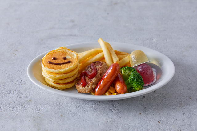 「キッズパンケーキセット」もお子様におすすめのセット。ミニパンケーキやハンバーグ、ソーセージ、ポテトなど人気の料理をぎゅっとワンプレートに。デザートにはゼリーが付いてきます。ご家族連れやお子様と一緒のママ友会などにおすすめです。